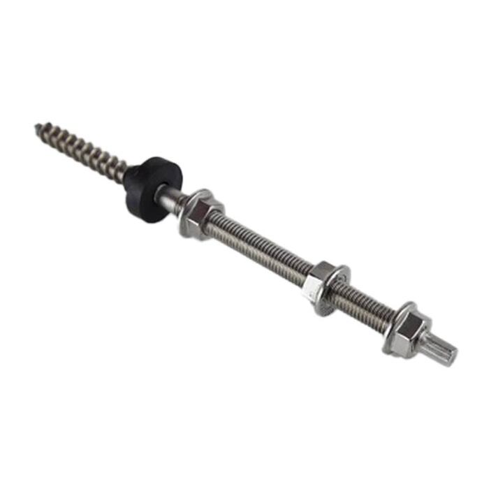Das hochwertige Material der Stockschraube ermöglicht eine zuverlässige Montage, die selbst extremen Witterungsbedingungen standhält. So können Sie Ihr Photovoltaiksystem stabil und langlebig auf dem Dach installieren. Durch das spezielle Gewinde der Stockschraube wird ein fester und sicherer Halt der Montageschiene auf der Unterkonstruktion des Daches gewährleistet.