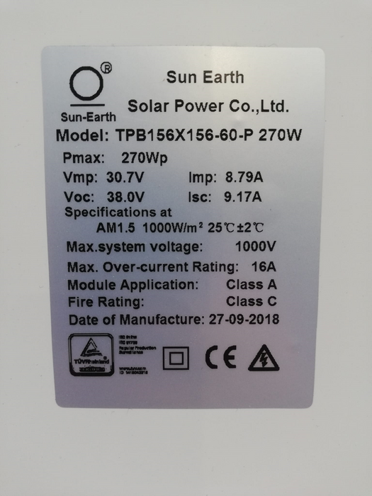 SUN EARTH TPB156X156-60-P POLYKRISTALLINES PHOTOVOLTAIK-PANEL 270W
