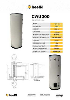 Zbiornik 200 l. na wode urzytkową z grzałka 3 kW , plus weżownica 3.1 m2