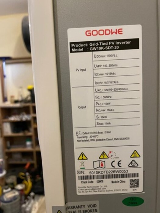 For sale used GoodWe GW10K-SDT-20 10Kw 3-phase Solar inverter, Excellent condition, almost 4 years Warranty remaining. Selling because switched to hybrid one.