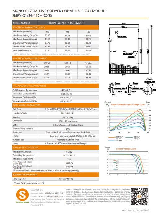 Solargiga Energy Solarmodule /JMPV-X1/54-410-420(R)