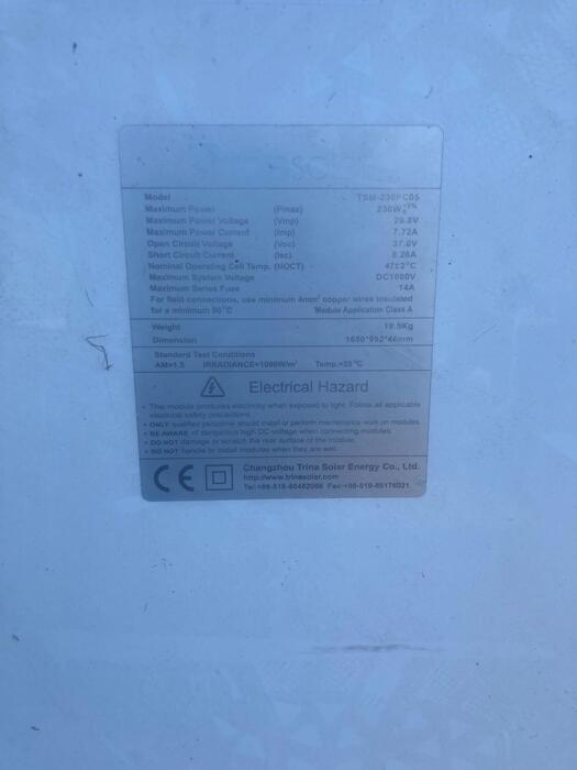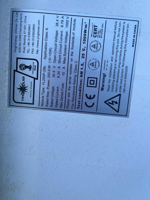 For Sale: Used Polycrystalline Solar Panels – 250W (Yingli Solar YL250P-29b)