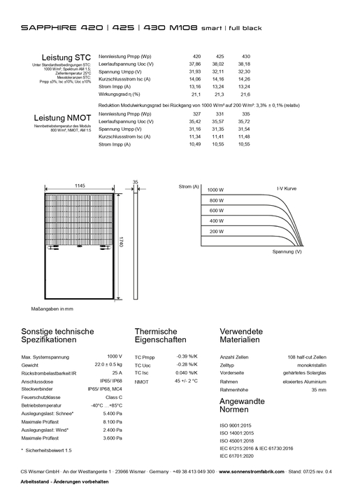 Bei den Sonnenstromfabrik-Modulen der Serie „SAPPHIRE“ handelt es sich um Glas/Folien Module, die höchsten Ansprüchen in Punkto Qualität und Ästhetik gerecht werden.