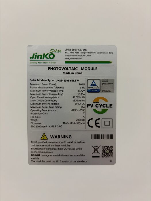 PV-Module / Mono / JinkoSolar - JKM440M-6TL4-V