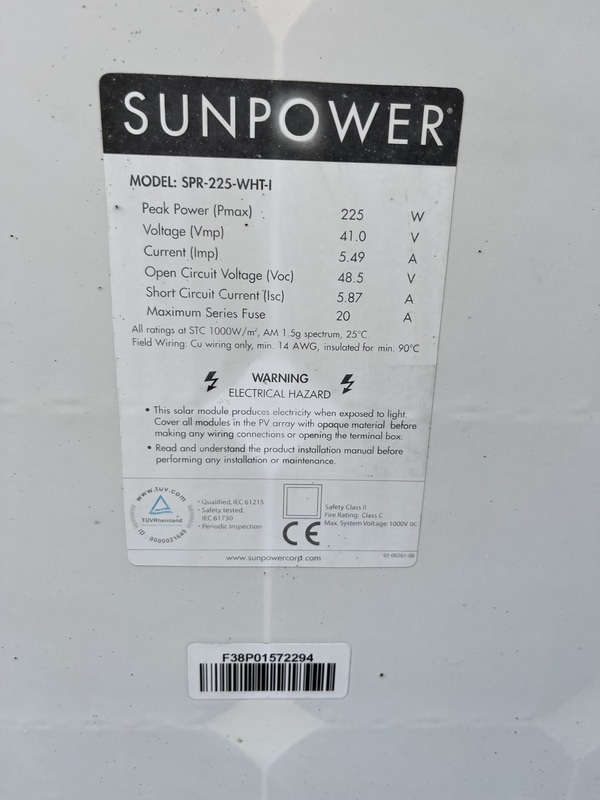 PV-Module / Mono / SunPower - SPR-225-WHT-I