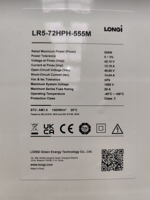 Das Longi Solar LR5-72HPH-555M Hi-MO5 ist ein bifaciales Solarmodul mit 555Wp.