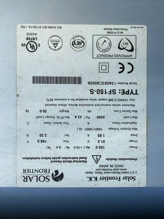 PV-Module / CIS / CIGS / Solar Frontier - SF150-S