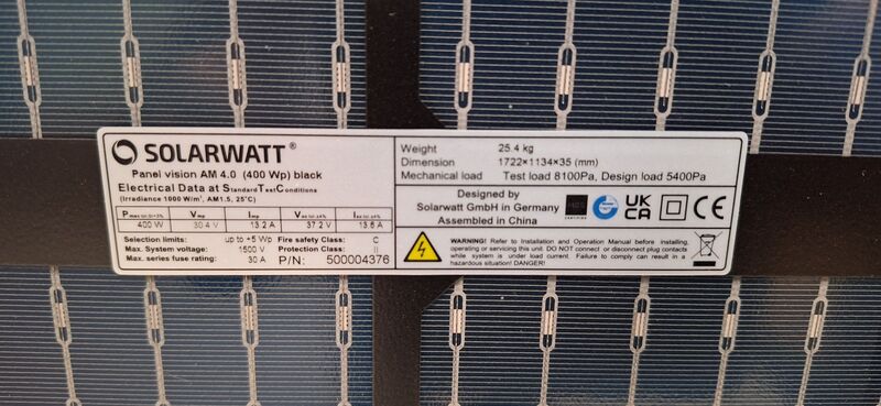 Das Solarwatt Panel vision AM 4.0 Black SW Low Carbon ist ein monokristallines Modul mit 400Wp.