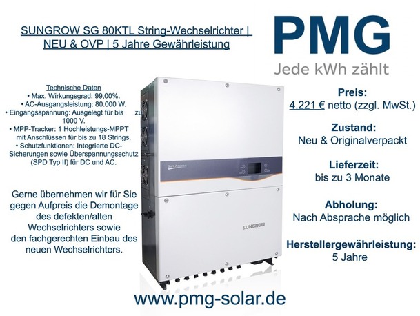 SUNGROW SG 80KTL String-Wechselrichter | NEU & OVP | 5 Jahre Gewährleistung