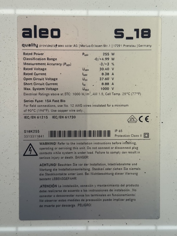 Verkaufe 22 Aleo S18 255 Watt Module.