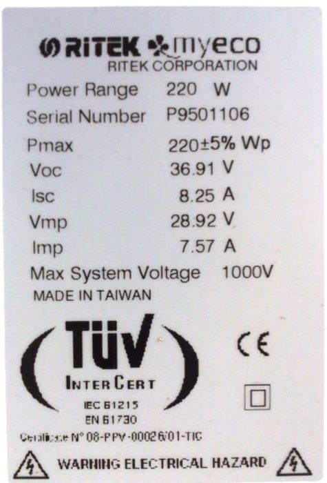 Das Ritek 220W ist ein polykristallines Solarmodul mit 220 Wp