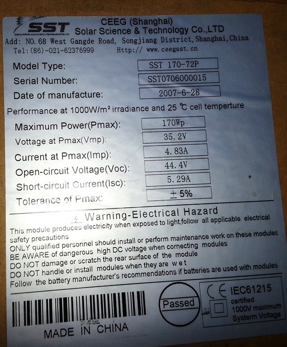 PV-Module / Poly / CEEG Solar - SST170-72P