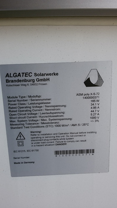 Bitte beachten Sie, dass es sich bei den Modulen um Modulnachbauten handelt. Die Module werden ohne Garantie oder Gewährleistung verkauft. Sollten Restgarantien bestehen, können diese beim Hersteller durch den Käufer geltend gemacht werden. Sollte der Hersteller insolvent sein, sind auch diese Ansprüche erloschen. Wir weisen ausdrücklich darauf hin, dass wir von Seiten SecondSol keine Gewährleistungsansprüche oder Garantien geben können. Die Module sind unbenutzt. Die Module werden ohne Leistungsgarantie verkauft. Von Seiten des Herstellers gibt es eine Produktgarantie von 5 Jahren.