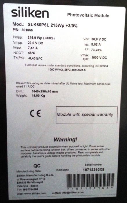 Siliken SLK60P6L 215Wp B-Ware / Siliken SLK 60 P6L 215Wp / Siliken SLK60 P6L