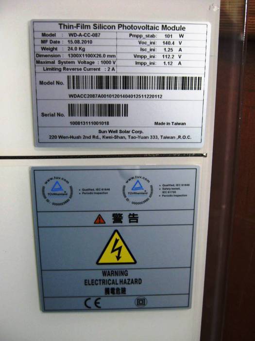 Solar Panel / a-Si / Sun Well - WD-A-CC-087 101Wp