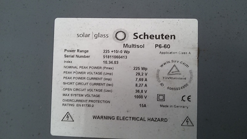 Es handelt sich um kurzzeitig gebrauchte PV-Module, welche in einem renomierten Testcenter getestet wurden und die Anschlussdosen nach Scheuten-Vorgabe gewechselt wurden. Die Module sind max. minus 4% sortiert. Flashlisten liegen vor.