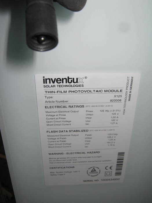 The Inventux X1-125 is an a-Si thin-film solar module with 125Wp