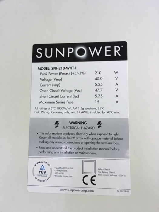 Sun Power SPR-210-WHT-I 210Wp / Sunpower SPR - 210 - WHT - I
