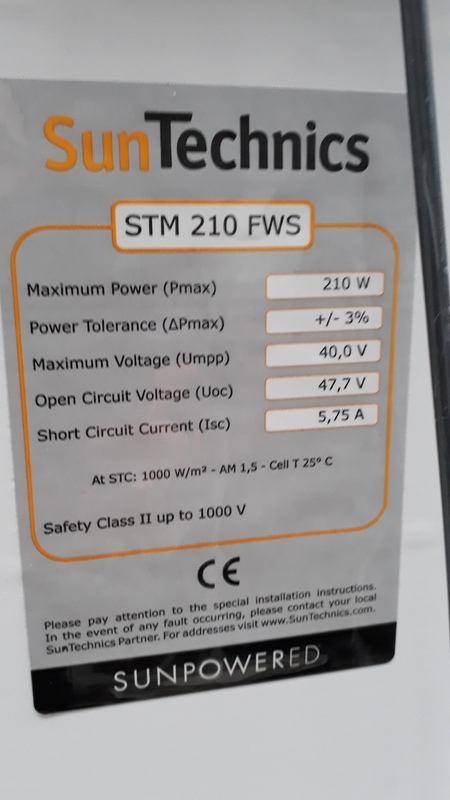 Nominal capacity 210 Wp