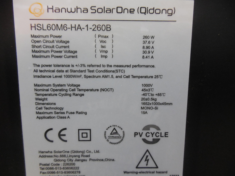 Solar Panel / Mono / Hanwha SolarOne - HSL60M6-HA-1-260B