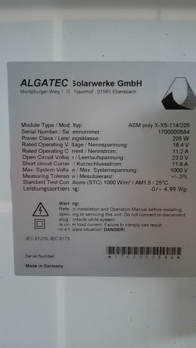 Nominal capacity 205 Wp