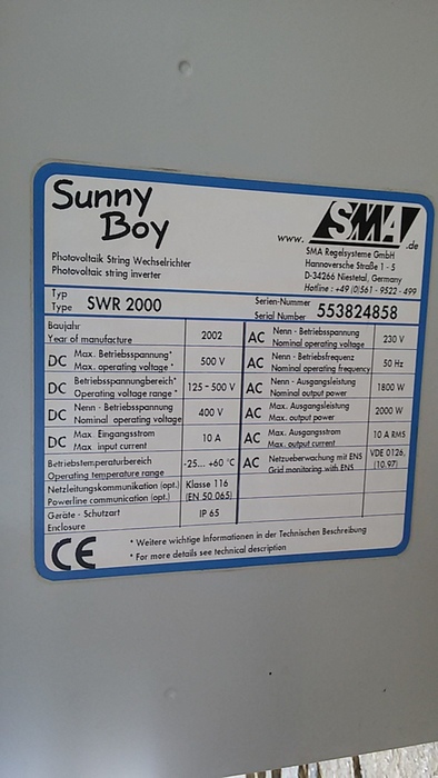 Inverter / String / SMA - Sunny Boy SWR 2000