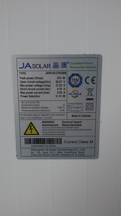 Solar Panel / Poly / JA Solar - JAP6-60-270/4BB ...