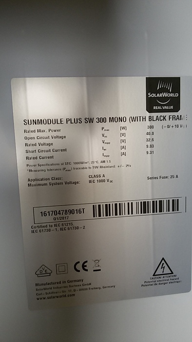 SolarWorld SM+ SW300 mono BFR / Solarworld SM + SW 300 mono BFR