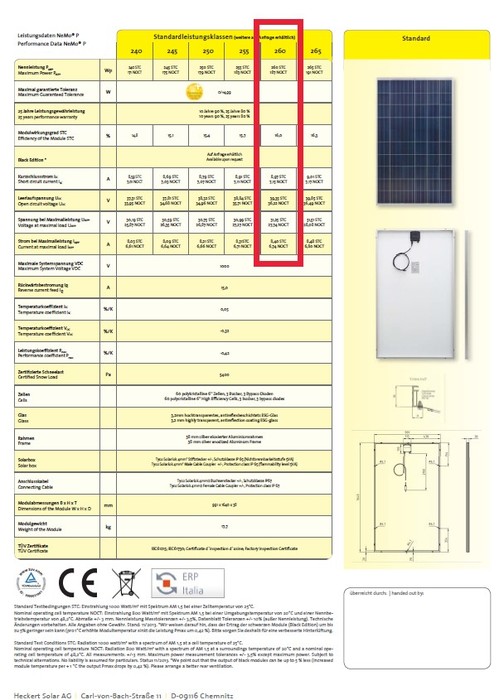 Type PV-Modul NeMo 60P 260Wp