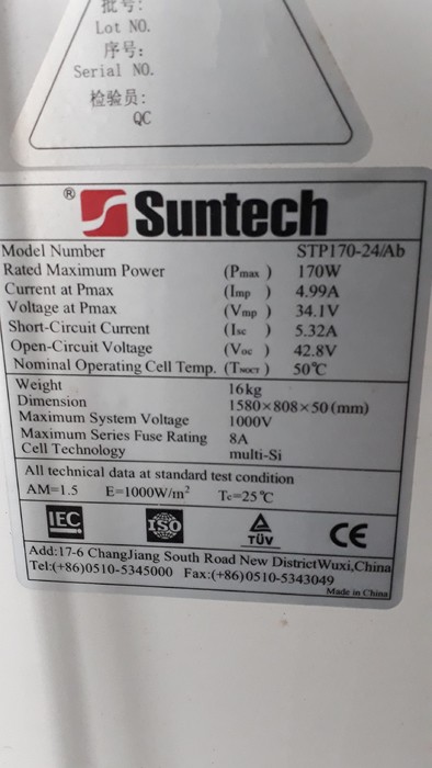 Das Suntech STP170-24/Ab ist ein polykristallines Solarmodul.