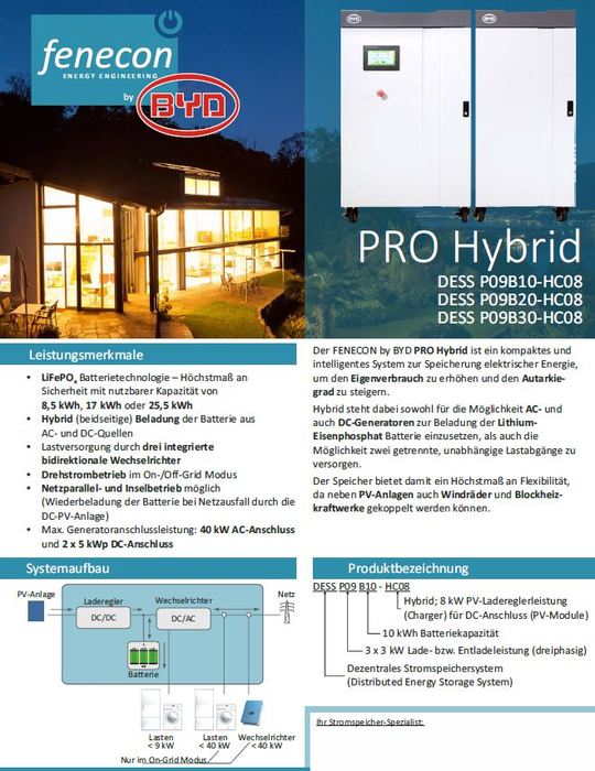 Type BYD Stromspeicher PRO Hybrid 9-10 DESS P09 B10 - HC08