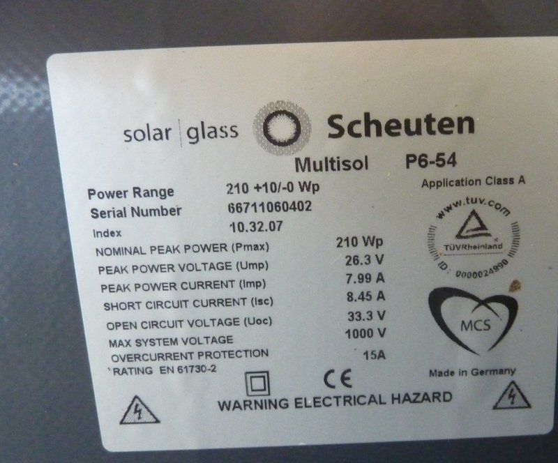 Type Scheuten Solar 210Wp +10Wp Multisol® P6-54 Series Black