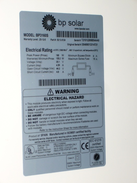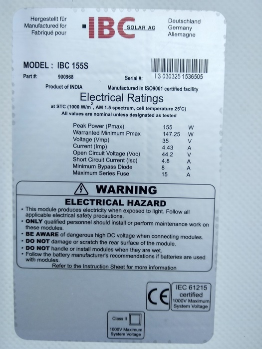 IBC 155S, Megaline, BP-Solar, Abmessung 1590 x 790 x 50 mm