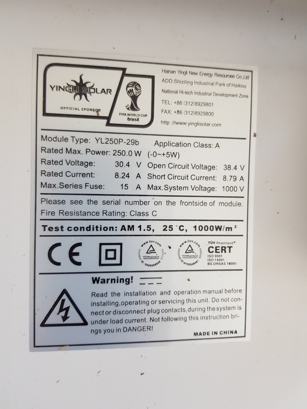 Solar Panel / Poly / Yingli - YL 250 P-29b Sol ...