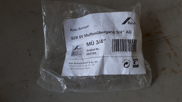 Roto Sunroof SZB Muffenübergang 3/4" AG