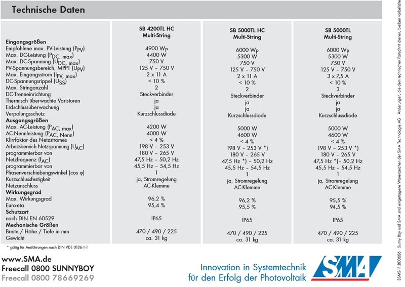 Inverter / String / SMA - Sunny Boy SB 500 ...