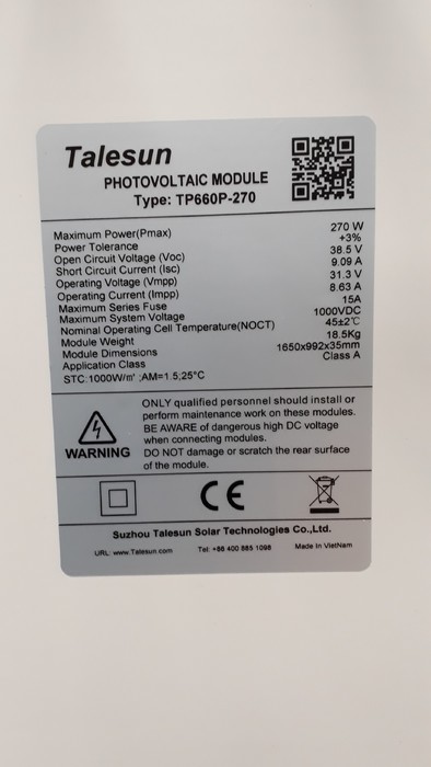 The solar panels Talesun TP660-270 are polycristalline panels with 270 Wp.