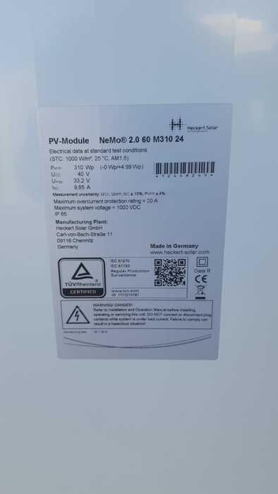 The Heckert NeMo 2.0 60M is a monocrystalline solar module with 310Wp