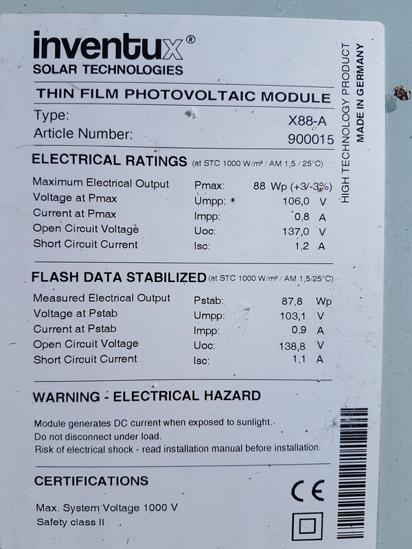 The Inventux X88-A is an a-Si thin-film solar module with 88Wp.