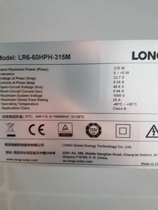 Solar Panel / Mono / LONGI Solar - LR6-60HPH 315M 3 ...