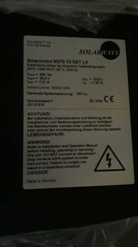 Bei den PV-Modulen handelt es sich um Restposten. Der Verkauf an Unternehmer erfolgt unter Ausschluss jeglicher Sachmängelhaftung. Beim Verkauf an Verbraucher verjähren die gesetzlichen Sachmängelansprüche in einem Jahr ab der Übergabe der Sache. Die Haftung für Schäden aus der Verletzung des Lebens, des Körpers oder der Gesundheit sowie für sonstige Schäden, die auf grob fahrlässiger oder vorsätzlicher Pflichtverletzung beruhen, bleibt unberührt.
