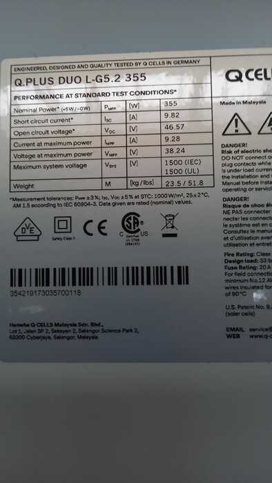 Hanwha Q.Cells Q.Plus DUO L-G5.2 355Wp / Hanwha Q.Cells Q.PLUS DUO L-G5.2 355 Wp