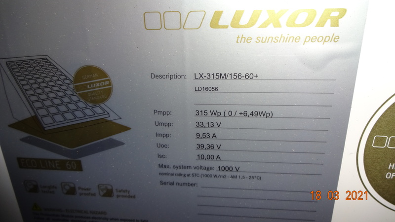 The Luxor Eco Line M60 / 315W (FS35) is a monocrystalline solar module with 315Wp.
