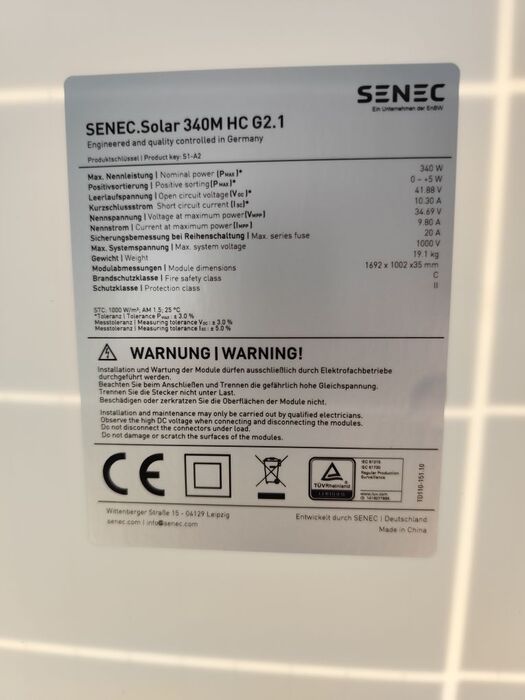 The Senec Solar 340M HC G2.1 is a monocrystalline solar module with 340Wp.