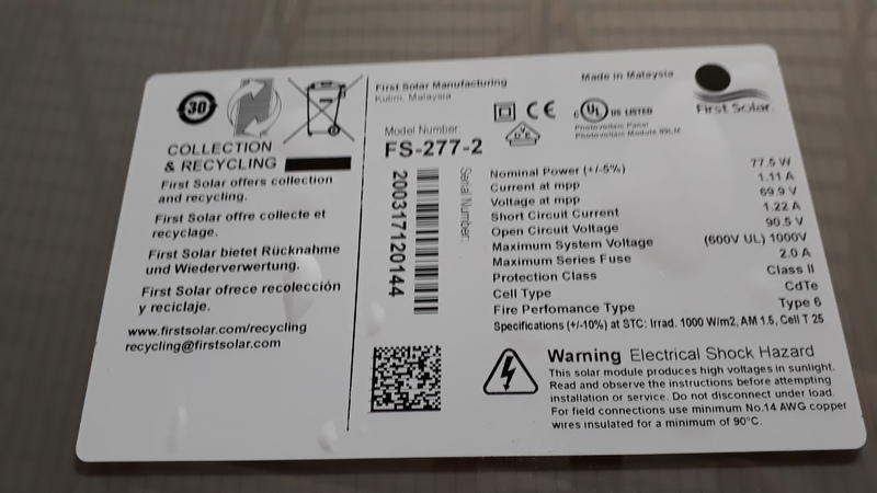 Das First Solar FS 277-2 ist ein Dünnschicht-Solarmodul mit 77.5 Wp.