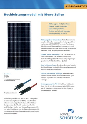The Schott ASE-200-GT-FT / TE is a polycrystalline solar module with 190Wp