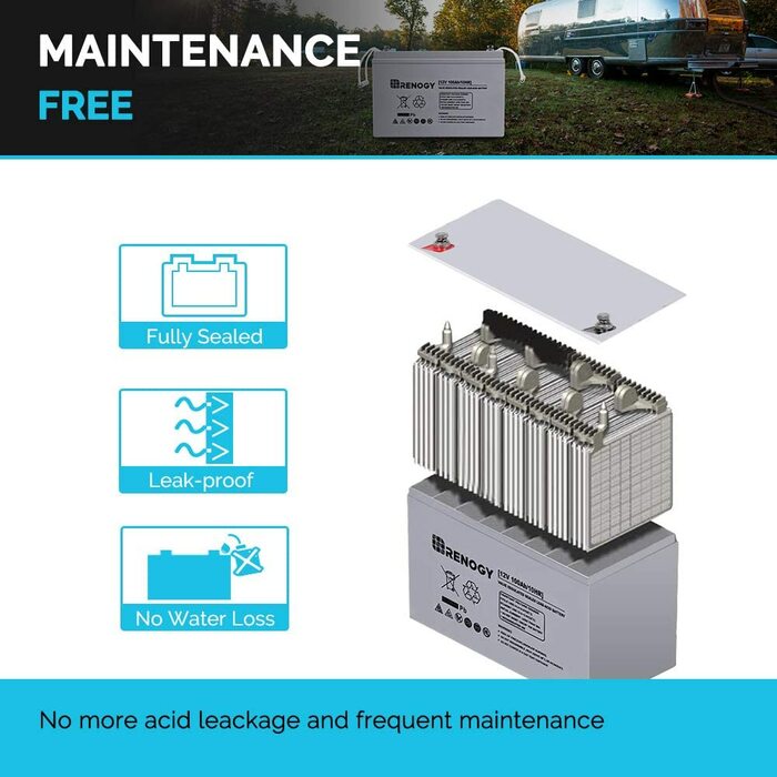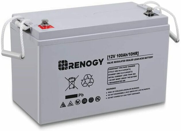 Type Renogy Deep Cycle AGM Battery 12 Volt 100Ah for RV, Solar Marine and Off-grid Applications, Gray