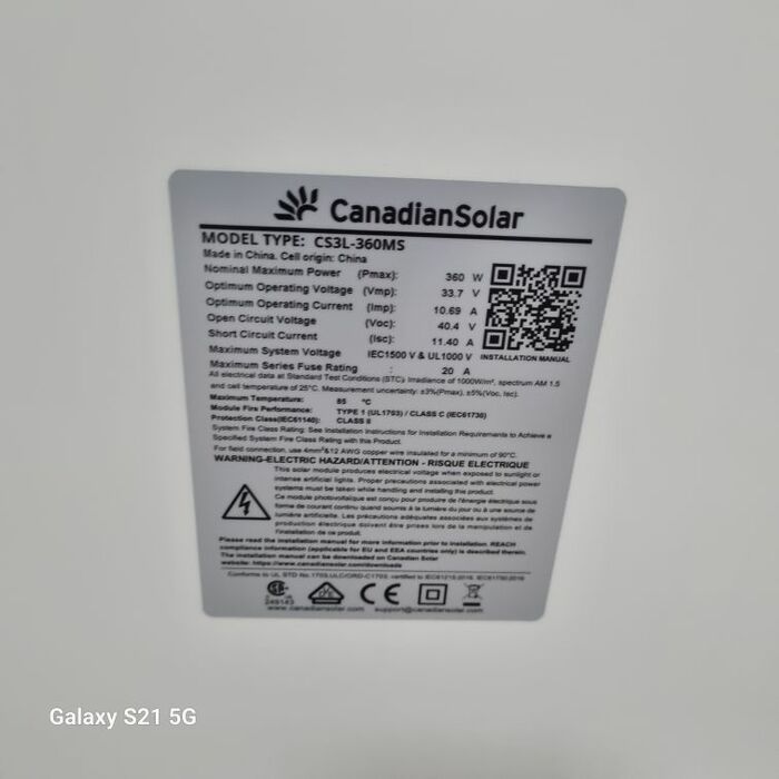 For more technical information, please refer to the Canadian Solar datasheets. You can find this on the manufacturer's homepage under Downloads or on the Internet. (https://www.canadiansolar.com/downloads)