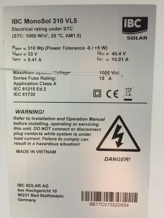 Solar Panel / Mono / IBC Solar - IBC MonoSol 310 VL5