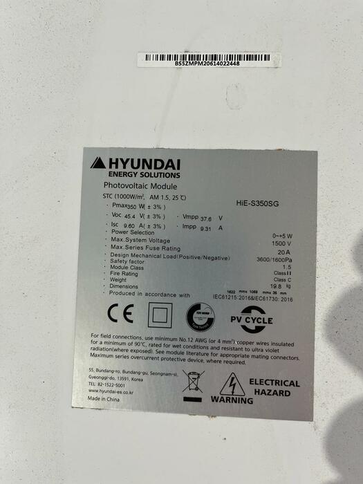 The Hyundai HiE-S350SG is a monocrystalline solar module with 350Wp